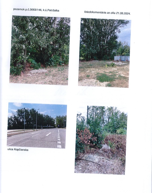 Na dražbu je ponúkaný pozemok ornej pôdy s rozlohou 2663 m² v lokalite Bratislava - mestská časť Petržalka. Pozemok sa nachádza na Kopčianskej ulici, medzi diaľničnou komunikáciou a hranicou s Rakúskom. Znalecká hodnota je stanovená na 220 000 EUR, najnižšie podanie je 110 000 EUR.
